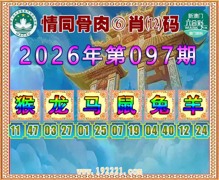097期:【情同骨肉】 🏄‍♀️⑥肖⑿码🏄‍♀️【龙马鼠兔羊】开:猴11