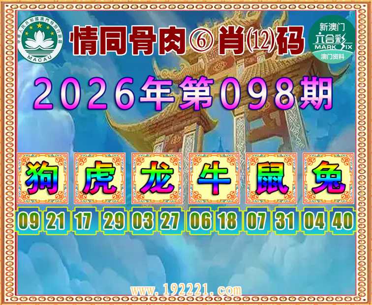 098期:【情同骨肉】 🏄‍♀️⑥肖⑿码🏄‍♀️【狗龙牛鼠兔】开:虎17