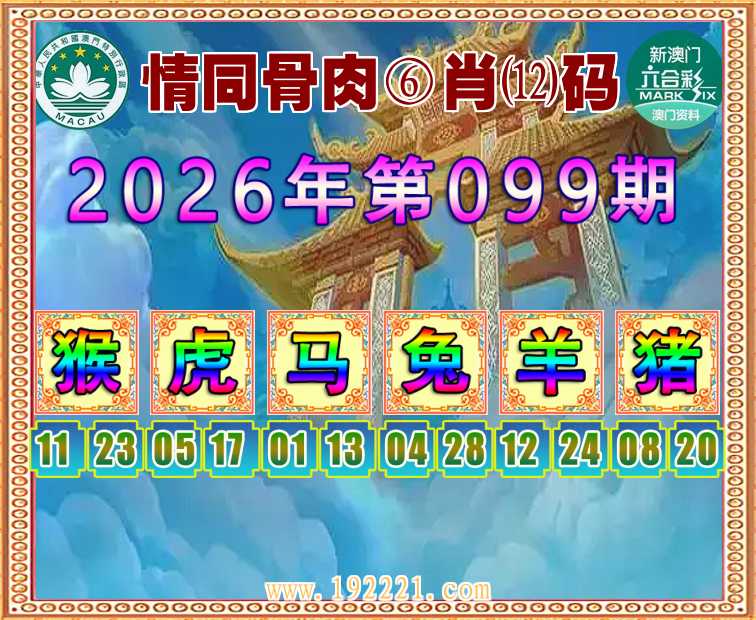 099期:【情同骨肉】 🏄‍♀️⑥肖⑿码🏄‍♀️【猴虎马兔猪】开:羊12