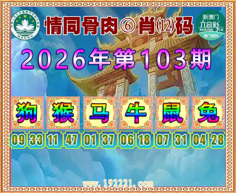 103期:【情同骨肉】 🏄‍♀️⑥肖⑿码🏄‍♀️【狗猴马鼠兔】开:牛06