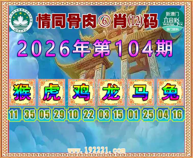104期:【情同骨肉】 🏄‍♀️⑥肖⑿码🏄‍♀️【猴虎鸡龙兔】开:马01